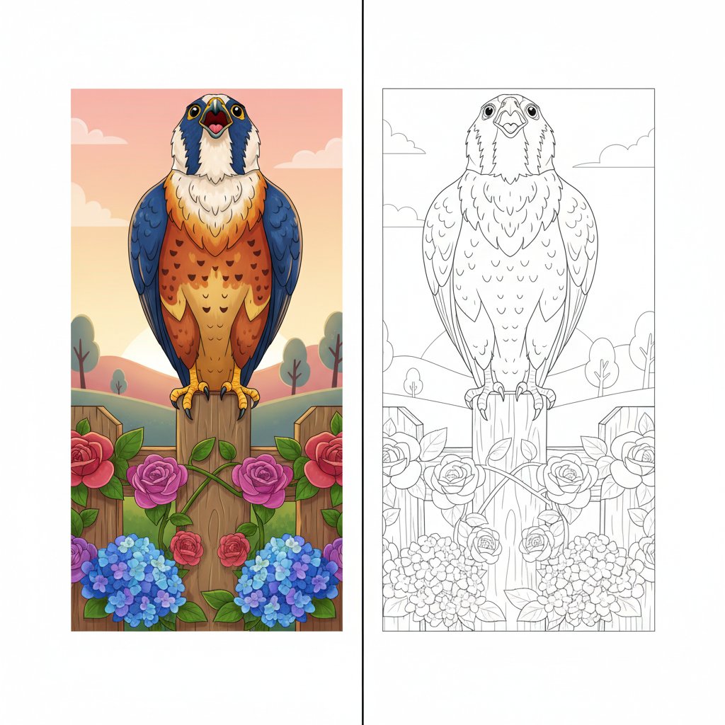 Classic Falcon Mirror Drawing - Medium