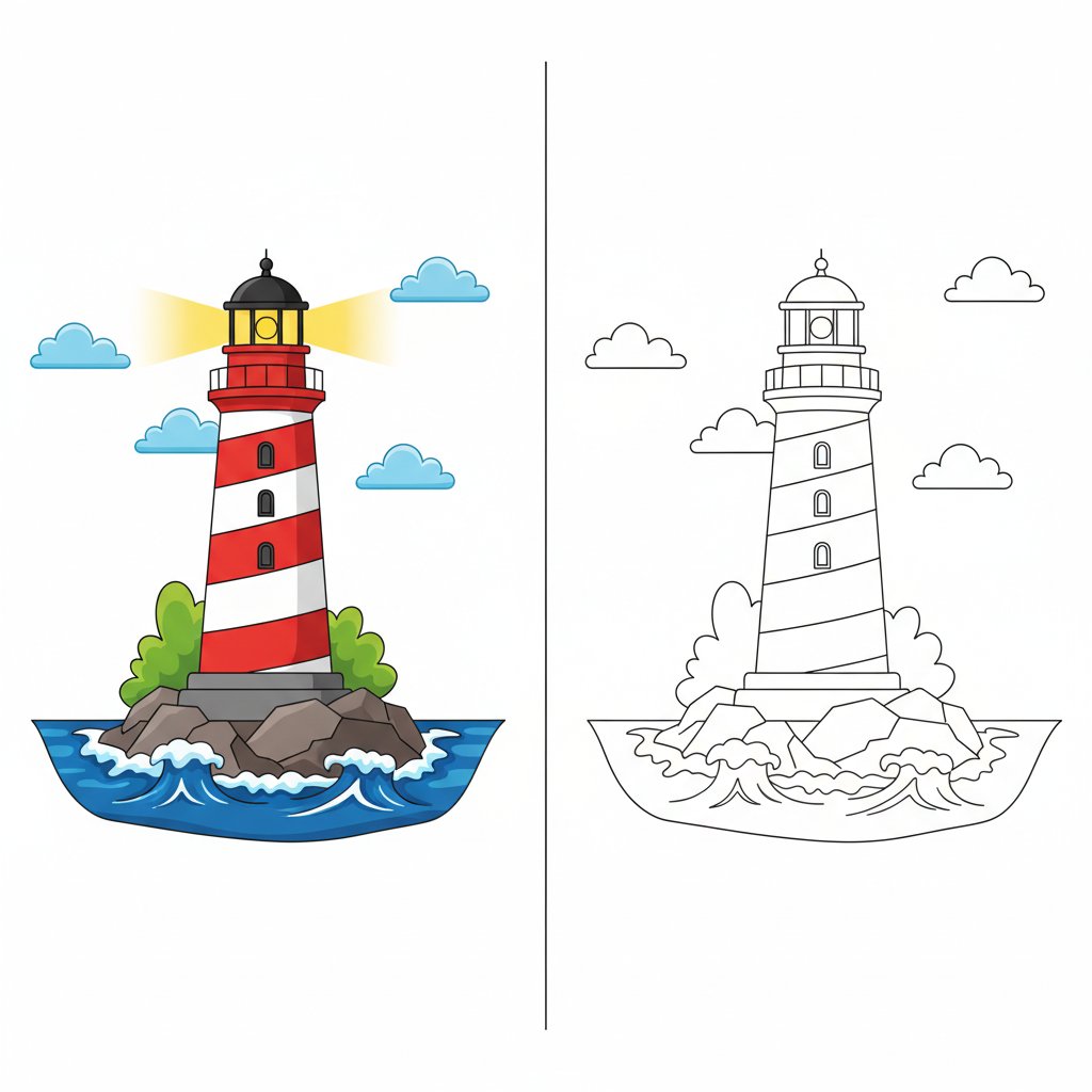 Vibrant Lighthouse Mirror Drawing - Medium