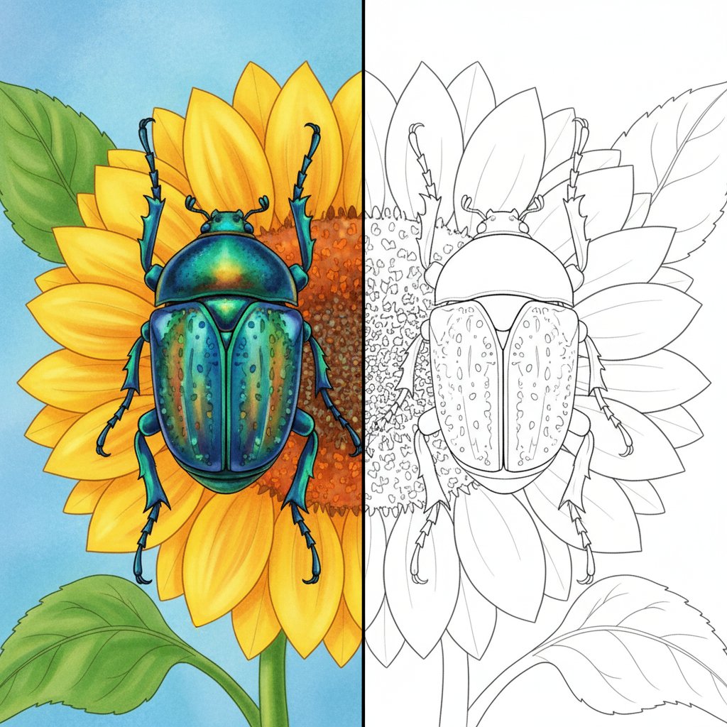 Whimsical Scarab Beetle Mirror Drawing - Medium