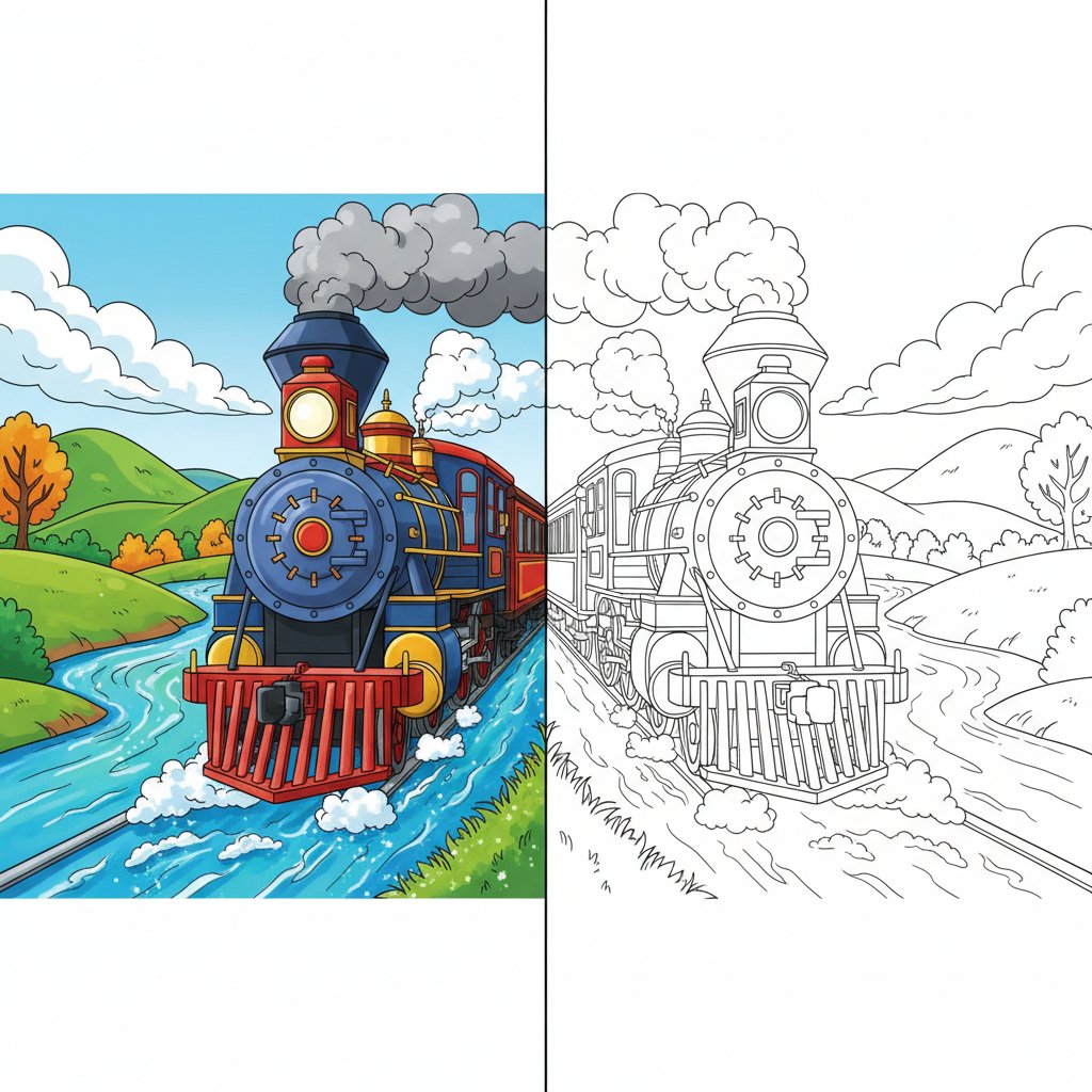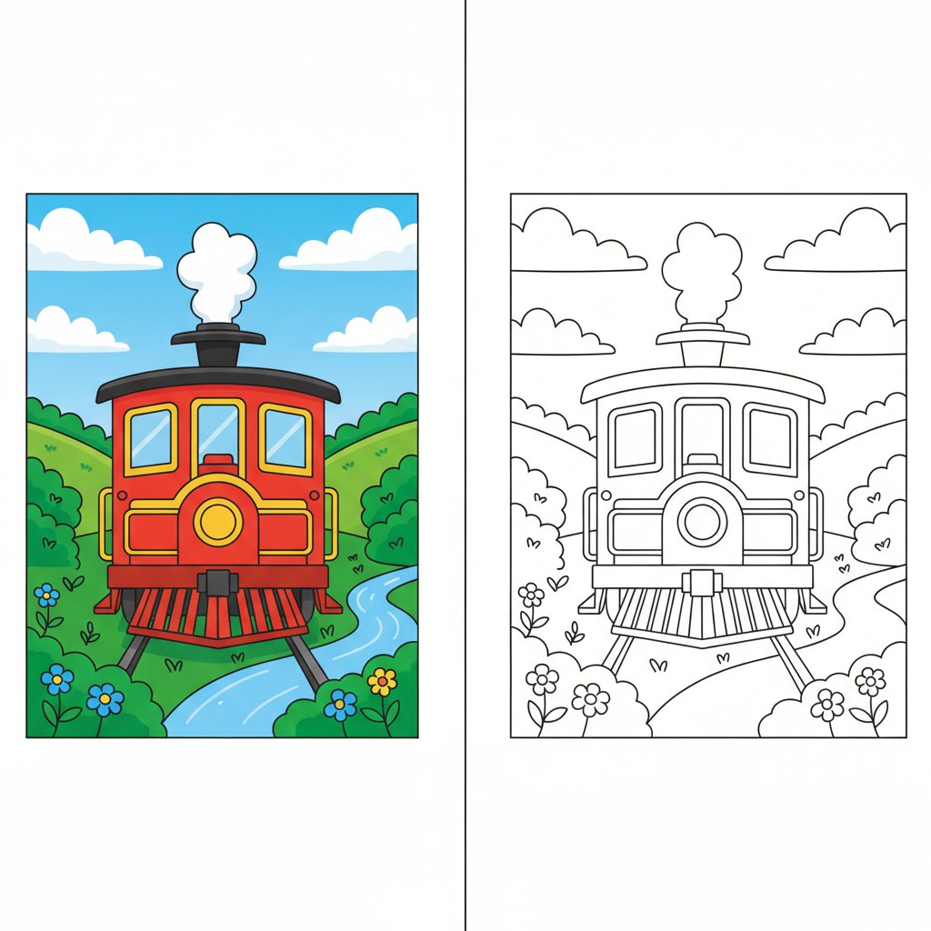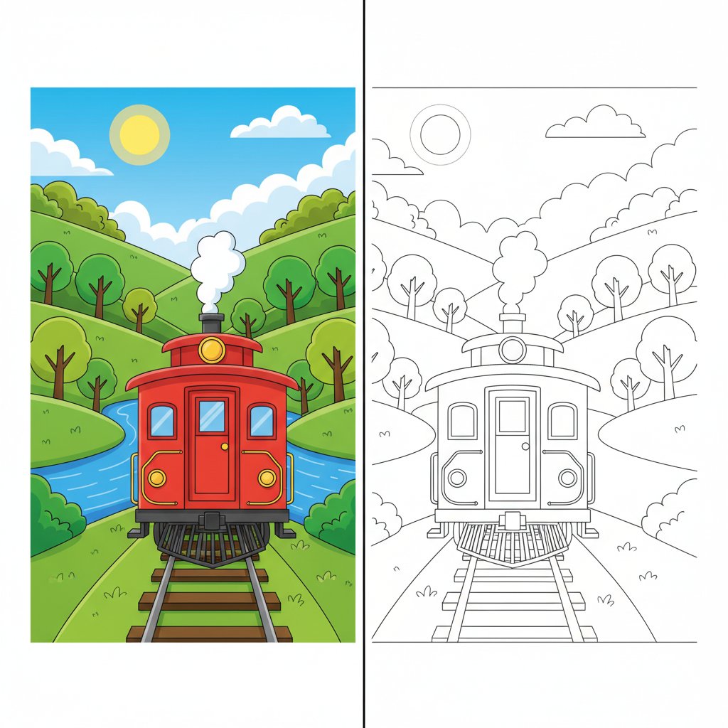 Sweet Toy Train Mirror Drawing - Hard