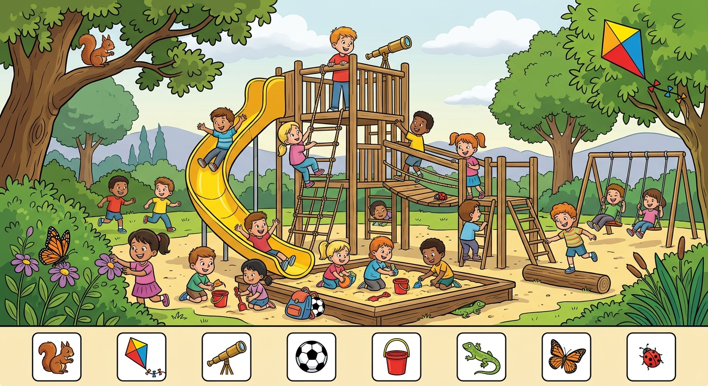 Descubre dibujos gratuitos de Parque Infantil para colorear en la categoría Buscar Objetos. Todas las plantillas se pueden descargar e imprimir gratis – ideales para niños y adultos.
