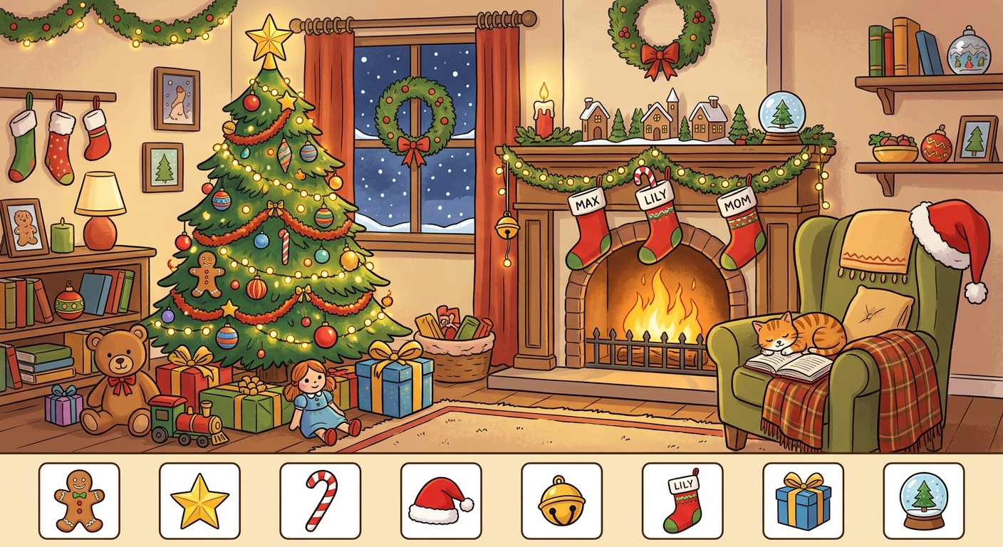 Sala de Estar Navideña Imagen Oculta - Fácil