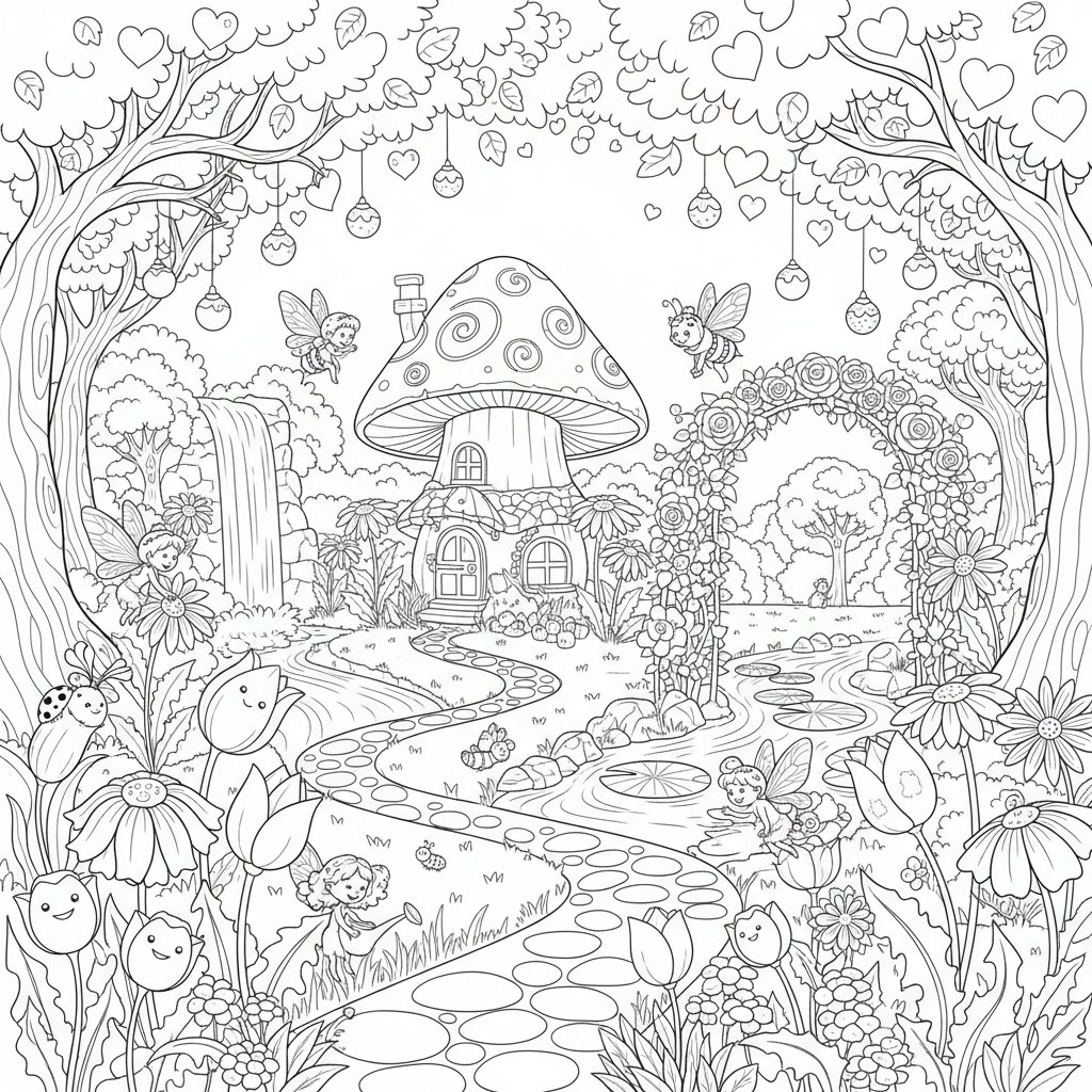 Página para Colorear de Alegre Jardín de Hadas - Medio | Paintino