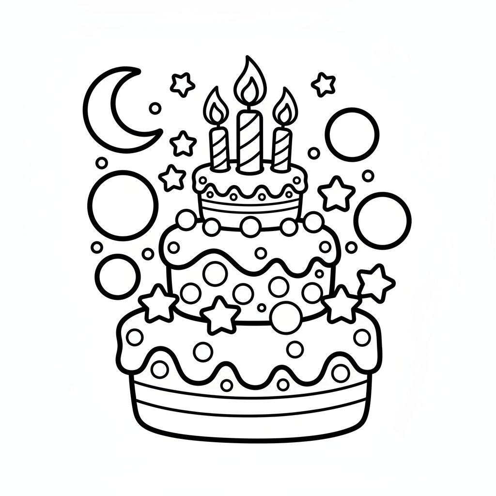 Página para Colorear Hermosa Tarta de Cumpleaños - Fácil