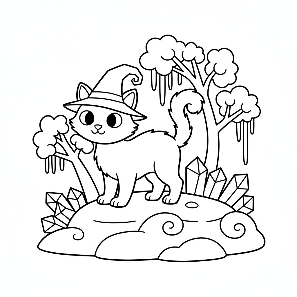 Página para Colorear de Gato Negro de Halloween - Fácil
