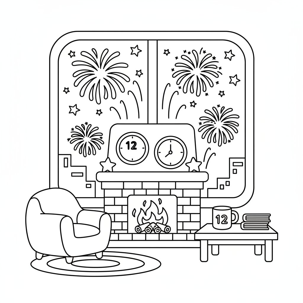 Página para Colorear de Fuegos Artificiales de Año Nuevo - Fácil