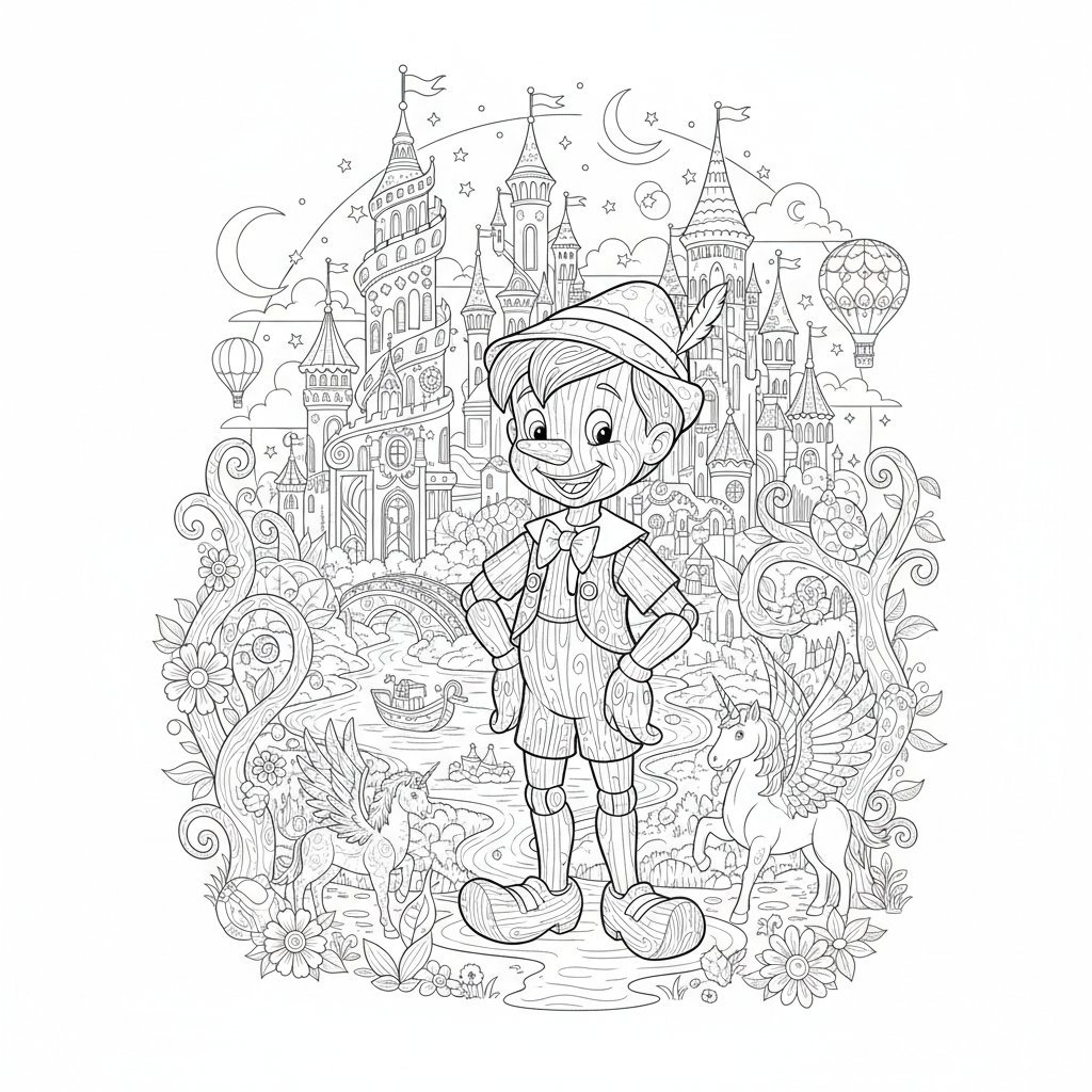Páginas para colorear clásicas con animales, vehículos, cuentos de hadas y más.
