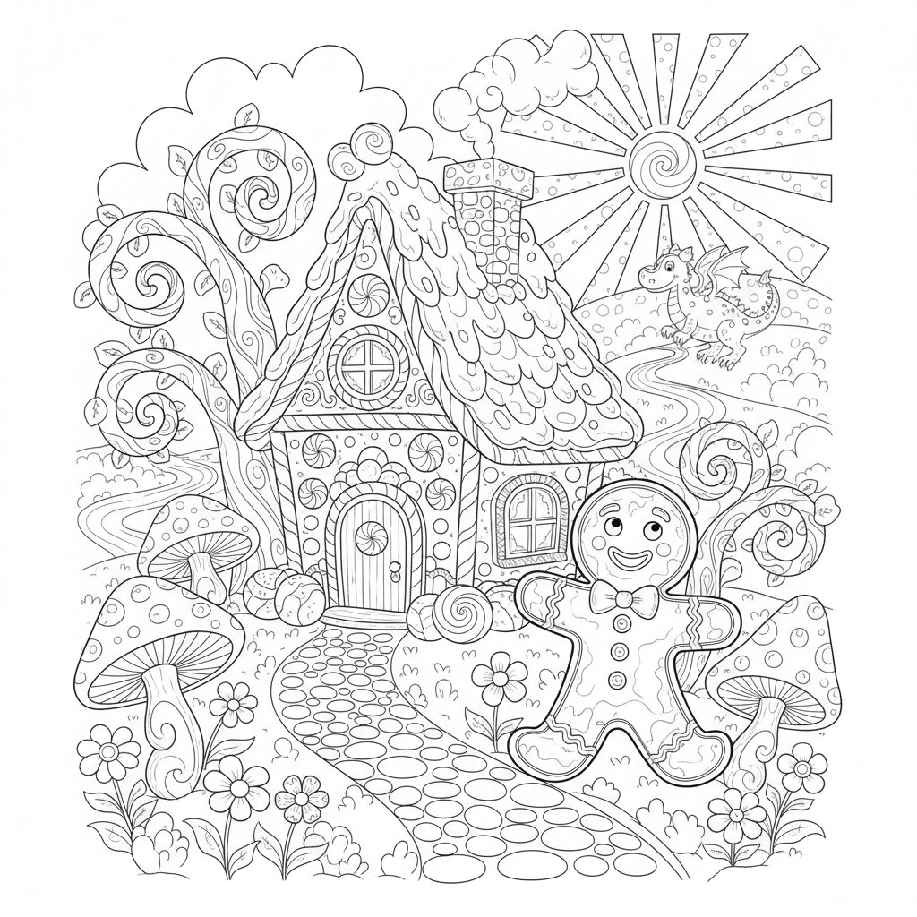 Página para Colorear del Hombre de Pan de Jengibre - Difícil