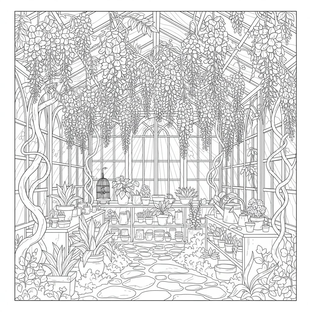 Página para Colorear de Glicinia Artística - Difícil
