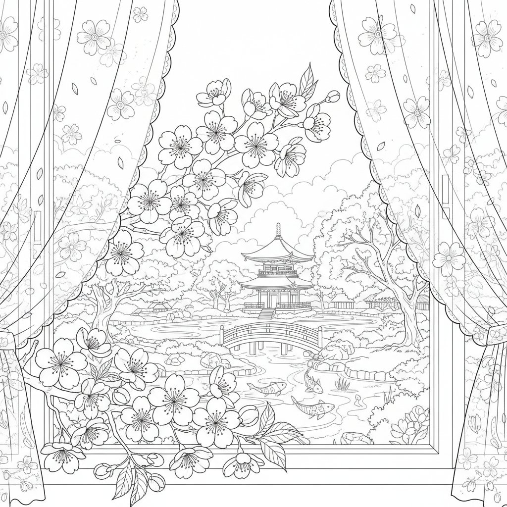 Página para Colorear de Flor de Cerezo - Difícil