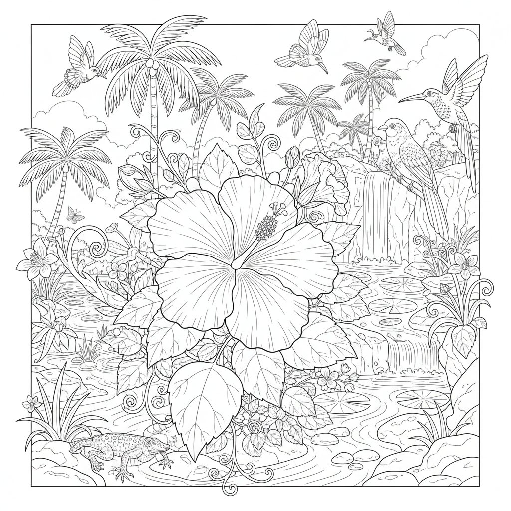 Página para Colorear de Hibisco - Difícil