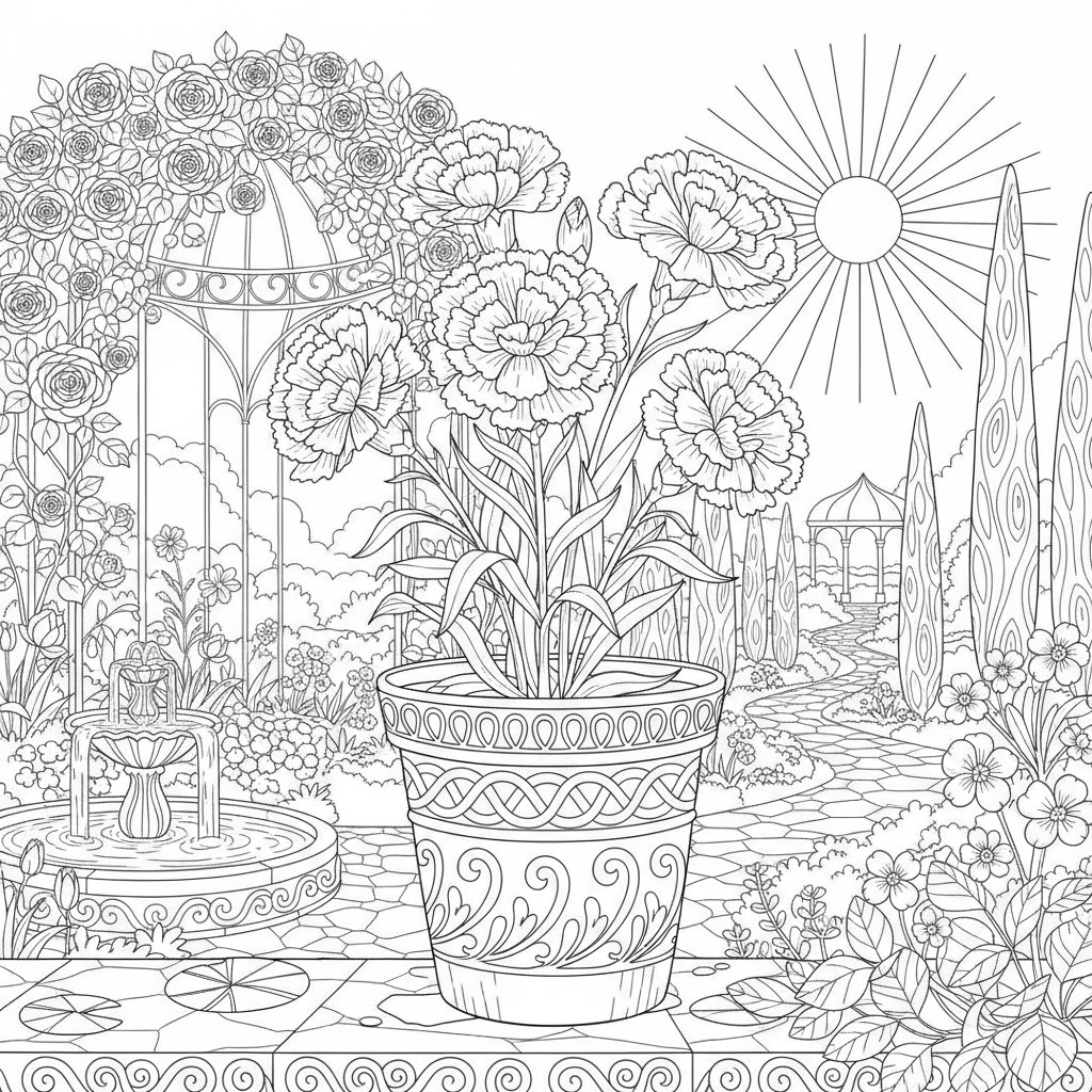 Página para Colorear de Clavel Majestuoso - Difícil