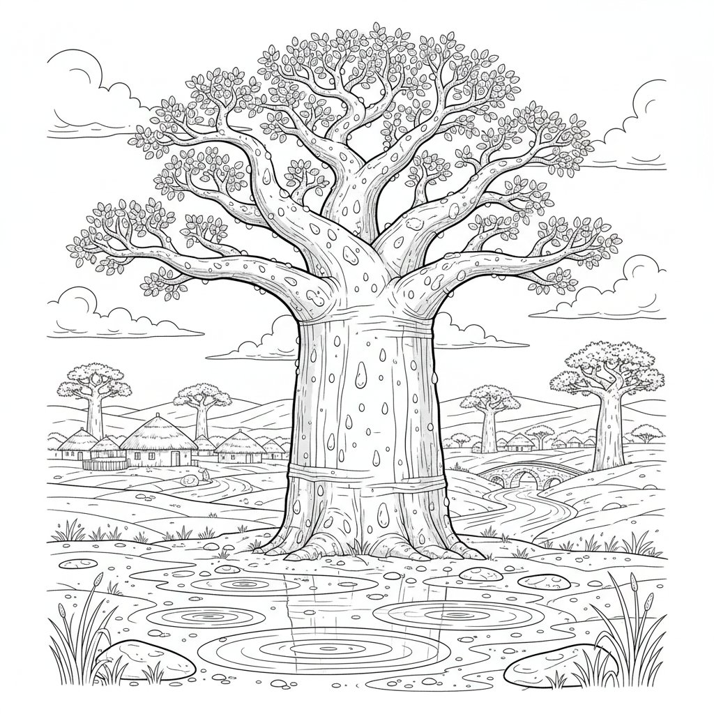 Página para Colorear de Baobab Tranquilo - Difícil