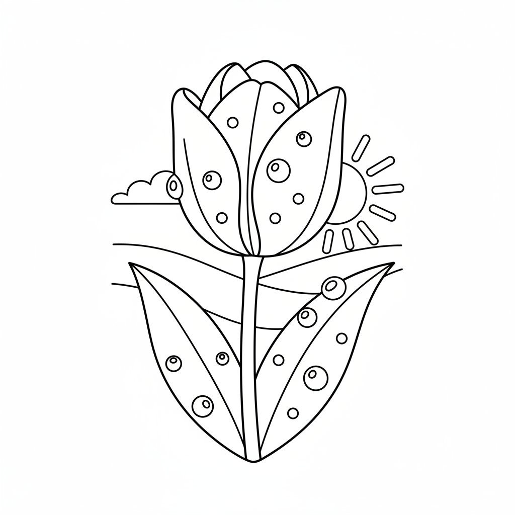 Página para Colorear de Encantador Tulipán - Fácil