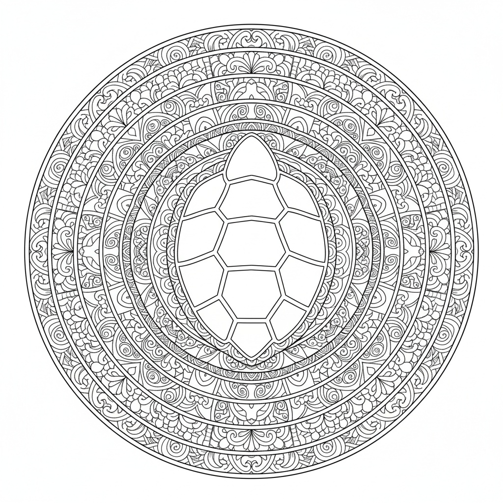 Mandala Guscio di Tartaruga stampabile gratuito. Difficoltà difficile. Scarica e stampa questo mandala gratuitamente. Perfetto per il relax e la mindfulness.
