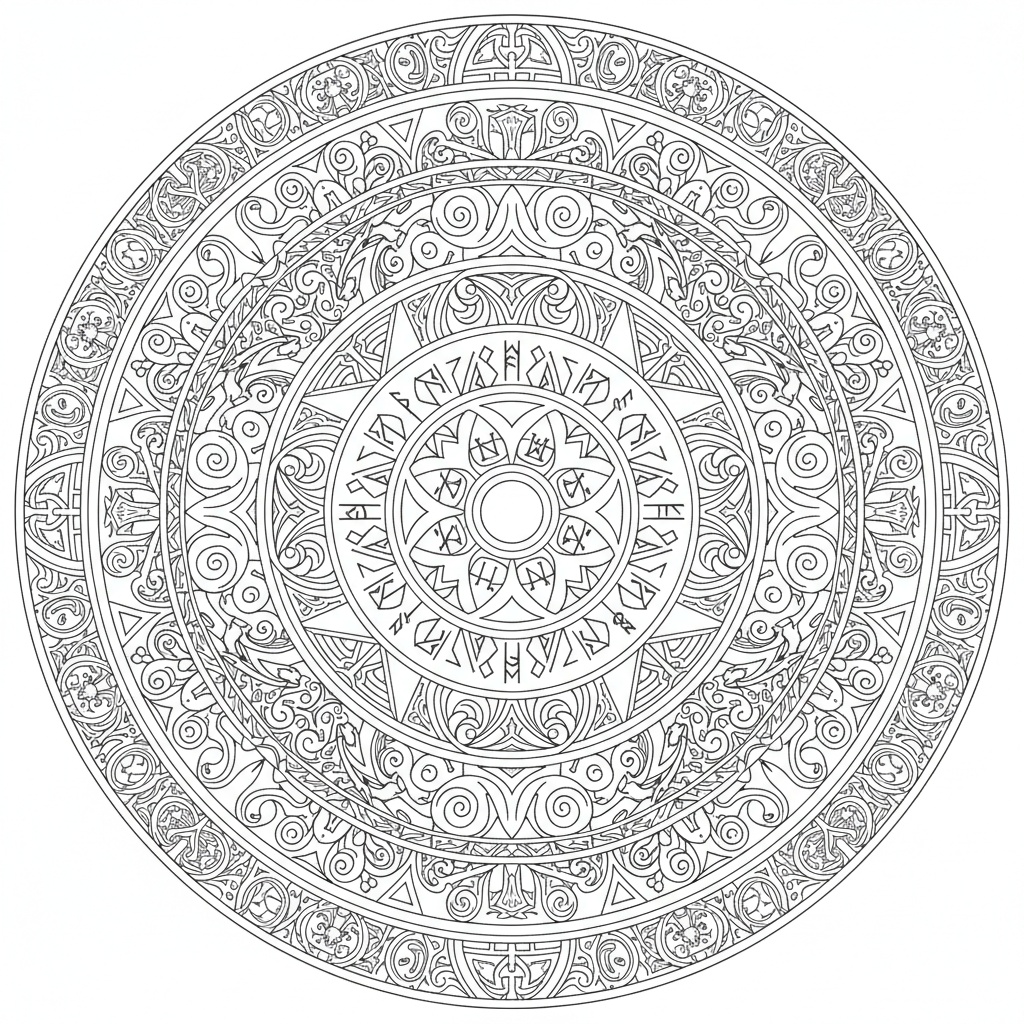 Mandala stampabile gratuito del Cerchio delle Rune Norrene. Difficoltà difficile. Scarica e stampa questo mandala gratuitamente. Perfetto per il relax e la consapevolezza.